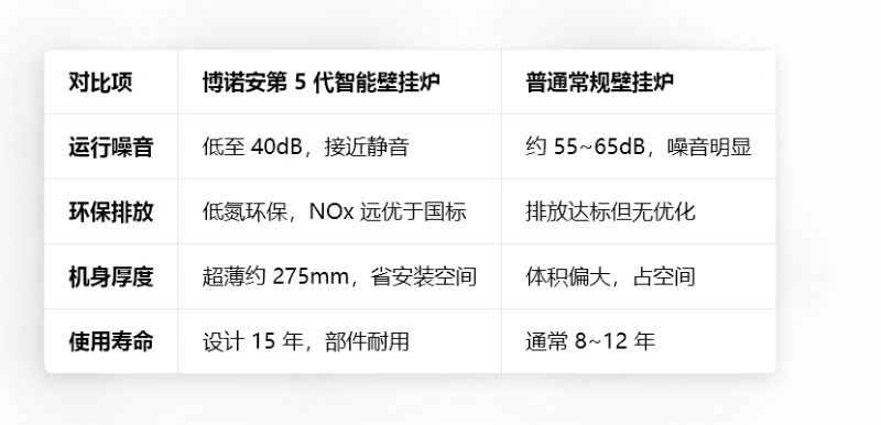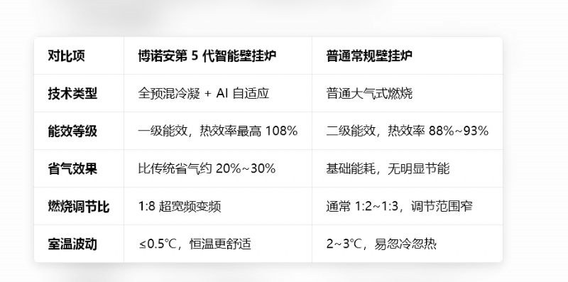 博诺安第 5 代智能壁挂炉 vs 传统壁挂炉 对比表